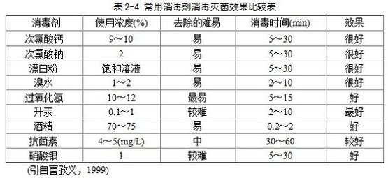 用于那些不能利用物理方法進(jìn)行滅菌的物品、空氣、工作面、操作者皮膚、某些實(shí)驗(yàn)器皿等。常用的化學(xué)消毒劑包括甲醛、高錳酸鉀、70%~75%乙醇、過(guò)氧乙酸、來(lái)蘇爾水、0.1%新潔爾滅、環(huán)氧乙烷、碘伏或碘酊等。其中利用70%~75%乙醇、0.1%~0.2%氯化汞、10%次氯酸鈉、飽和漂白粉等進(jìn)行實(shí)驗(yàn)材料的滅菌;利用甲醛加高錳酸鉀[(2 mL甲醛+1g高錳酸鉀)/m3]或乙二醇(6mL/m3)等加熱熏蒸法進(jìn)行無(wú)菌室和培養(yǎng)室的消毒。在使用時(shí)應(yīng)注意安全,特別是用在皮膚或?qū)嶒?yàn)材料上的消毒劑,須選用合適的藥劑種類(lèi)、濃度和處理時(shí)間,才能達(dá)到安全和滅菌的目的。