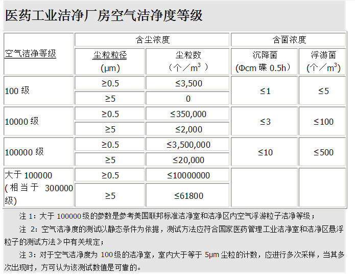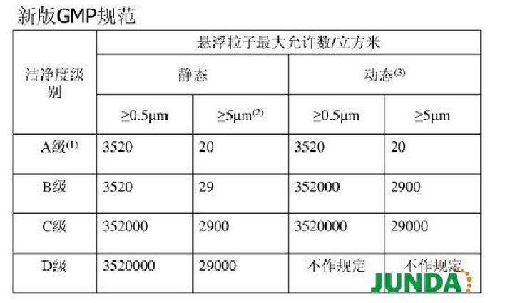 GMP中A、B、C、D級控制上有動靜態之分,而百級、萬級、十萬級則基本無動靜態之分,兩者之間有著明顯的差異。新版GMP參照ISO14644中規定具體標準如下: 新版GMP采用了歐盟和**新WHO的A、B、C、D分級標準,并對無菌藥品